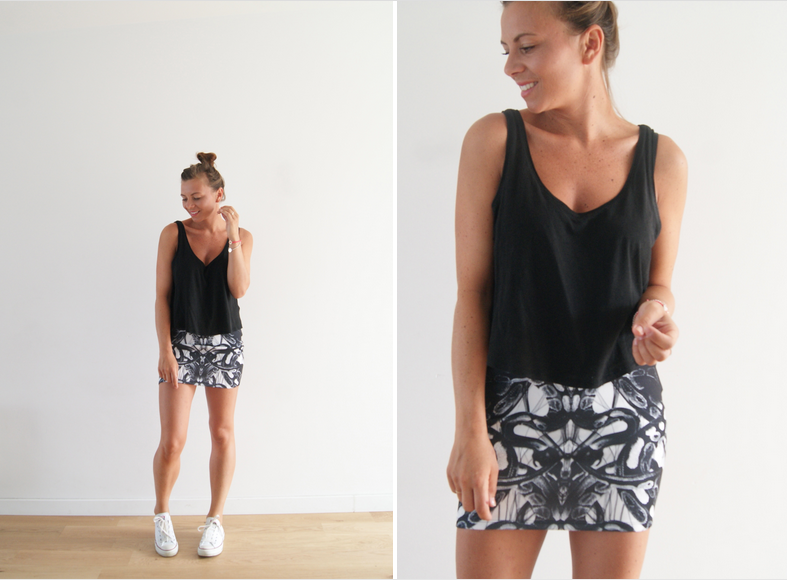 Je porte une nouvelle fois un crop-top-basique-hetm, je ne le quitte plus, l’ai porté pendant 3 semaines… ou presque! (quelle dégueulasses!) (je l’ai en double… rassurez vous, ahah!) j’adore ce top il est tout simple mais va avec TOUT, la coupe me convient parfaitement. Large, ni trop court, ni trop long. Short, jupe, jeans, jogging je crois que tout y est passé! Aussi cette jupe est une petite merveille, en même temps je crois que je pourrais craquer sur TOUTE la collection Noisy May, c’est canon et les prix restent très raisonnables, et plus encore en soldes car la jupe est a 15 euros. De quoi se faire plaisir! A demain, bises xx