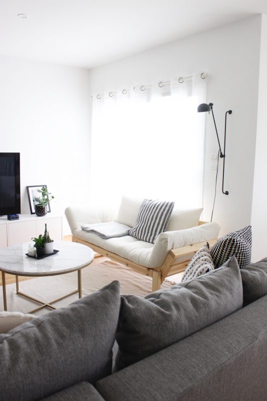 Il été important de faire un point avec vous, car je sais que bien souvent les articles déco font envie voir même rêver, et que malheureusement on ne peut pas tous s’offrir un joli canapé à 1700 euros, ou encore des chaises à 150 euros l’unité. Alors je vous dirais, d’être patient, et de faire comme nous : de vous inspirer un maximum et d’acheter au fur et à mesure de vos moyens sans trop loucher chez les autres. La patience et l’inspiration ont des avantages : ça permet de bien savoir ce que l’on veut. Le canapé en bois par exemple, si j’avais acheté un canapé l’année dernière, clairement, je n’aurais jamais craqué sur celui-ci… Sans regret pour moi car je l’adore !