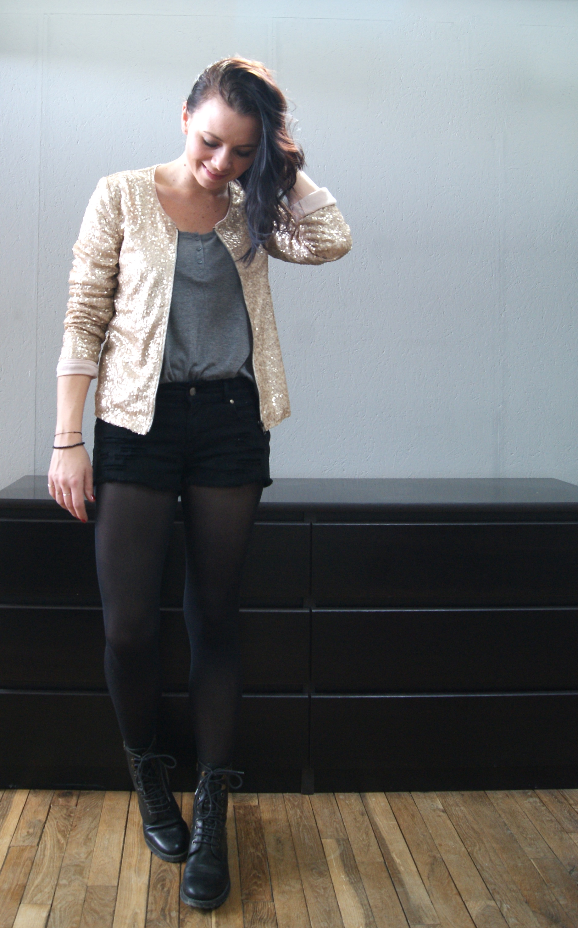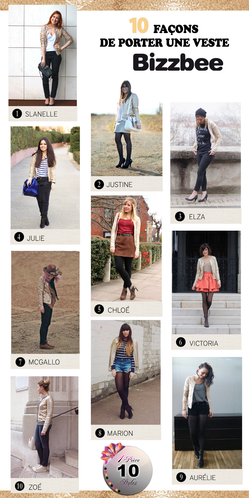 Salut, salut! Voilà la nouvelle édition du 1P10S, avec la jolie Marion de Fringe et Frange qui rejoint la team et avec un partenaire qui nous avait déjà fait l’honneur de nous offrire une jolie pièce étoilée. Il s’agit de Bizzbee. Moi qui habite en province depuis maintenant 1 an, (le temps passe vite) j’ai un Bizzbee tout près de chez moi à la Roche sur Yon (l’équipe et carrément sympa au passage). Je connais donc bien la collection, et à chaque fois que j’y passe je trouve des pièces vraiment canons. Quand Bizzbee nous a annoncé que cette fois ci nous allions avoir une veste à sequins j’étais RA-VIS, c’est le genre de pièce qui colle parfaitement avec mon dressing, que je n’avais pas (encore) et dont j’avais TRES TRES envie. La pièce que je vais pouvoir porter