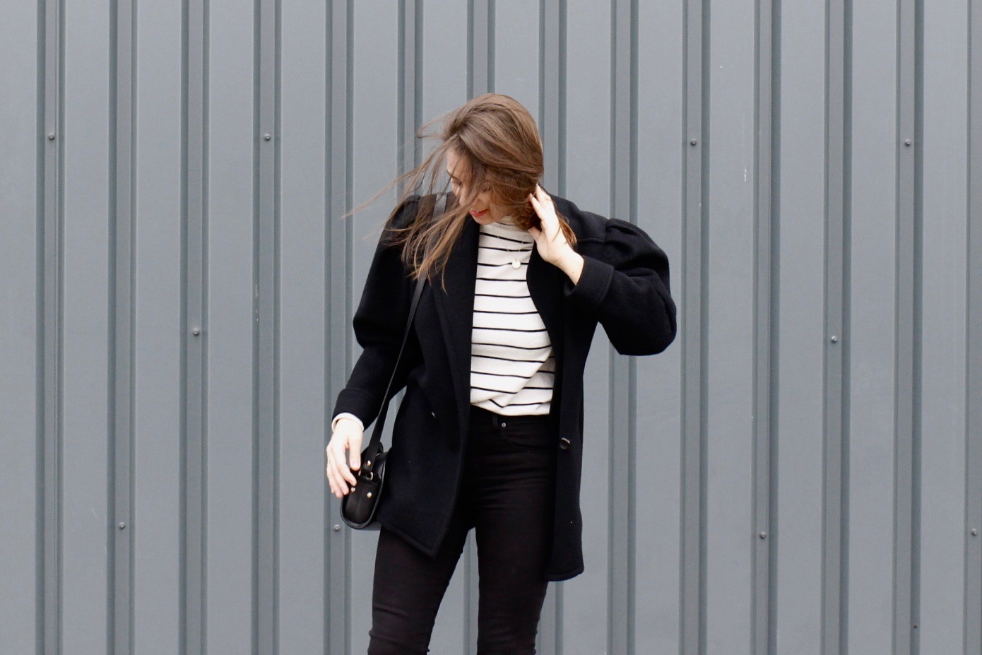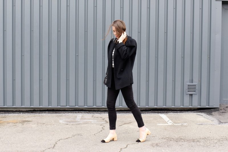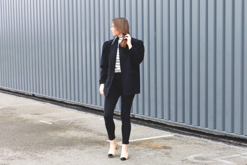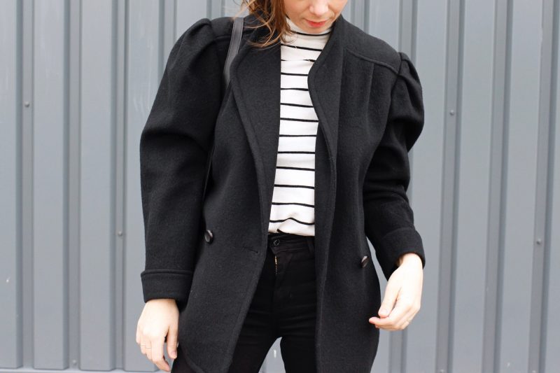 J’ai depuis quelques temps dans mon placard ce manteau noir à la coupe loose, une coupe qui me rappelle une veste portée par ma Grand-mère il y a quelques années, je crois que c’est aussi pour cette raison que j’ai craqué : les souvenirs. Je dois dire qu’habituellement je n’aime pas les vêtements avec des épaulettes, j’ai l’impression de paraitre énorme avec ce genre de pièce, que ce soit les chemises, vestes ou manteaux, mais cette grosse pièce m’a conquise !