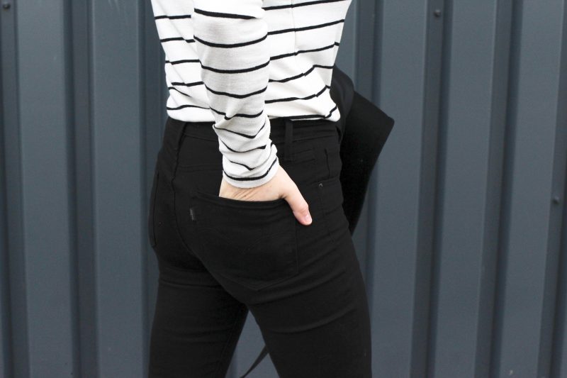Manteau seconde main / Pull Mango / Jeans Levi’s / Chaussures Zara / sac APC